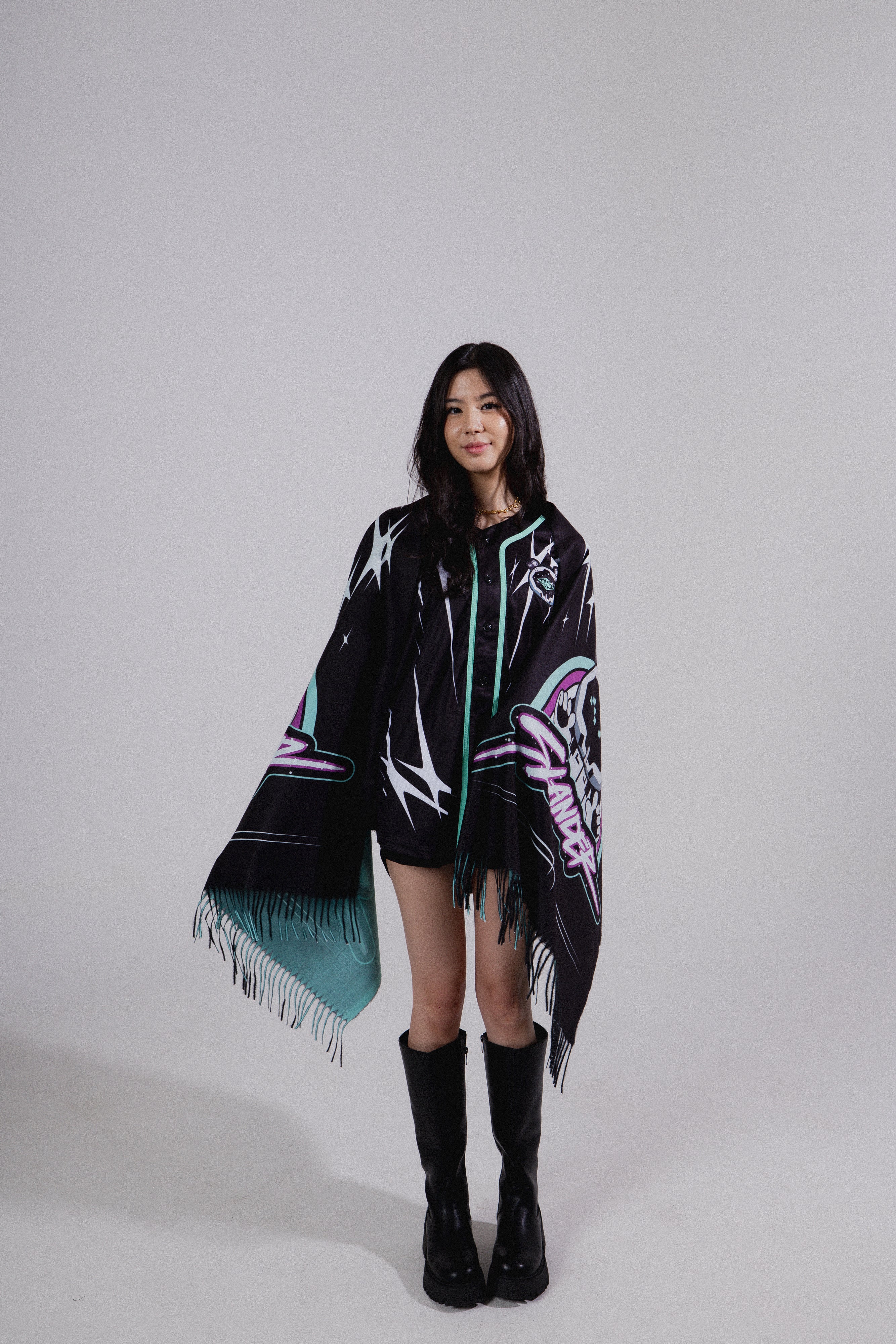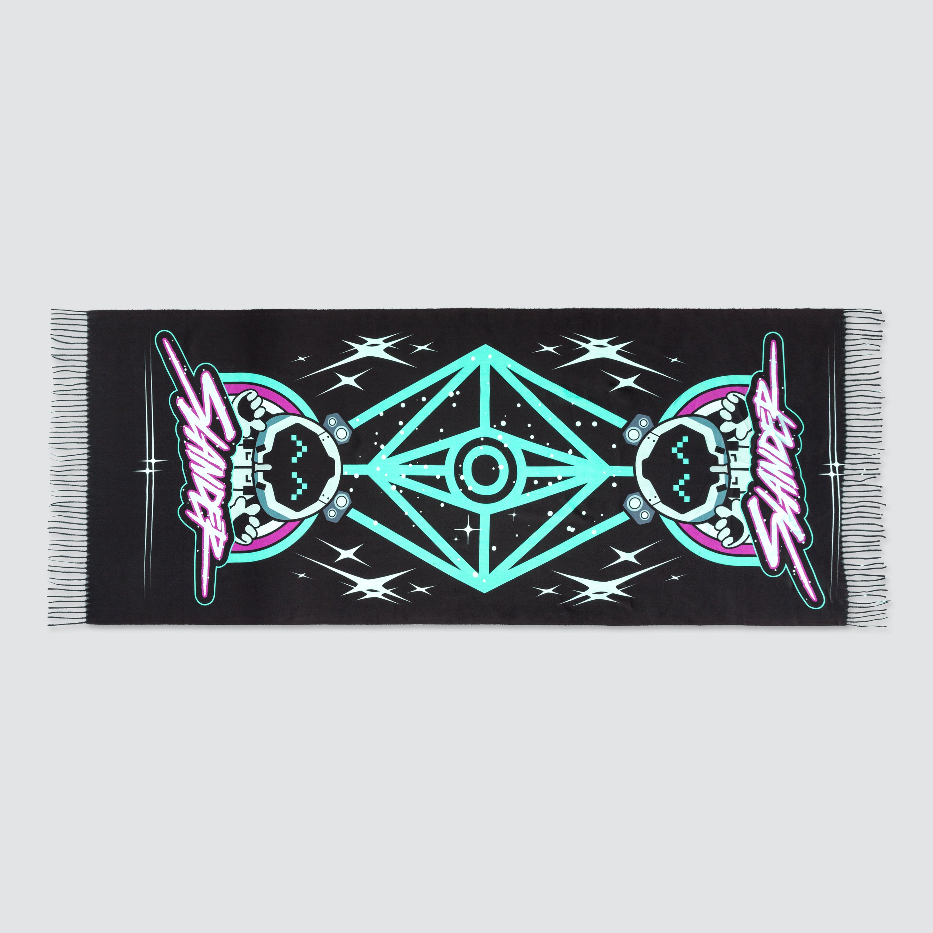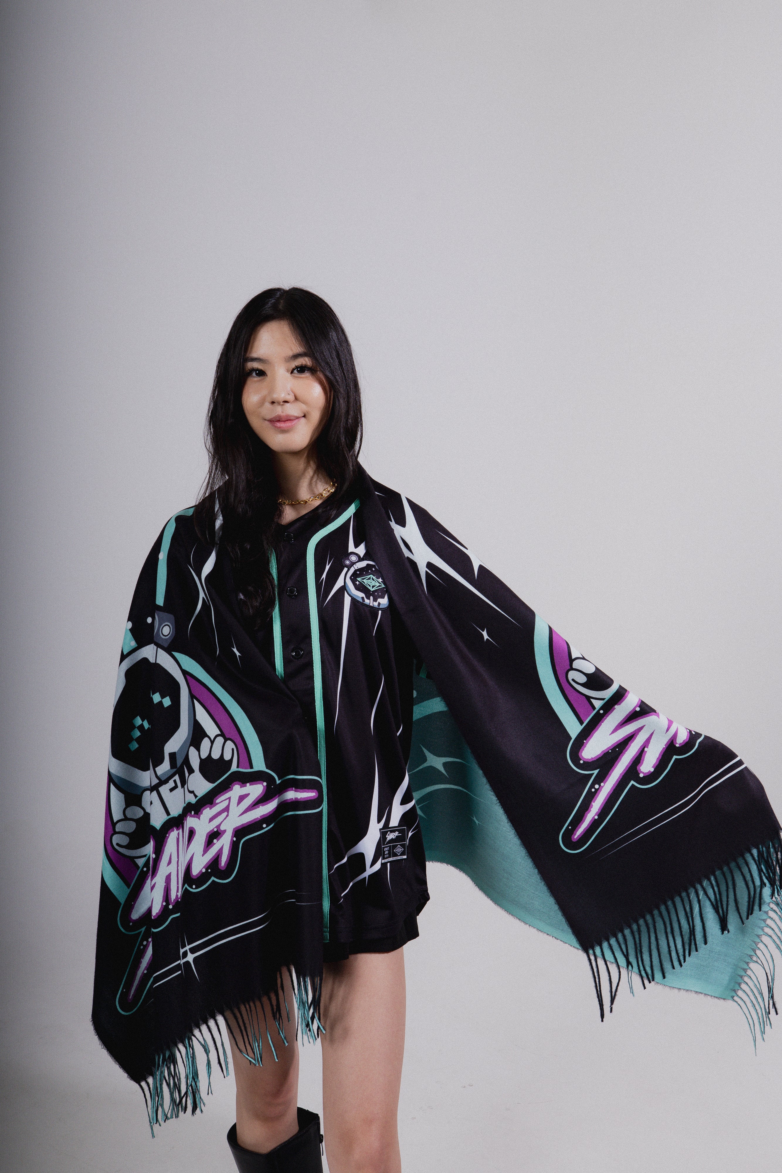 - Sublimated design with fringe edges